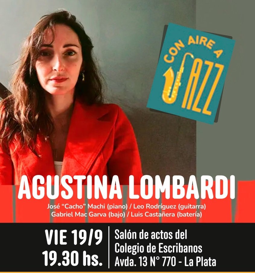 La música volverá a ser protagonista en la ciudad con la presentación de Agustina Lombardi y su nuevo espectáculo “Con aire a Jazz”. El encuentro será el jueves 19 de septiembre a las 19.30 horas en el tradicional Salón de Actos del Colegio de Escribanos, ubicado en calle 13 Nº 770, en pleno centro platense.