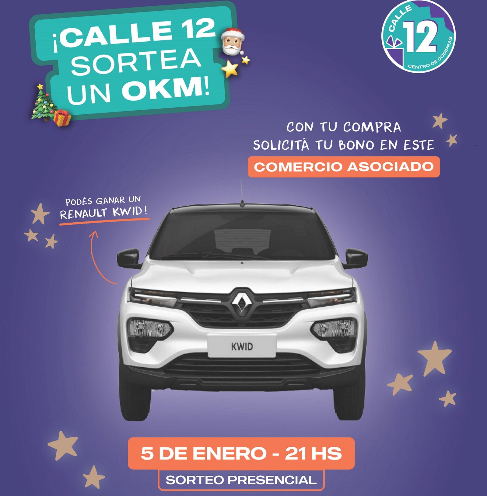 🚗 Este 5 de enero, a las 21 hs en Plaza Moreno, podés ser el ganador de un Renault Kwid.